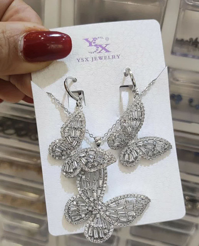 نیمست جواهر پروانه، گردنبند وگوشواره پروانه نگین دار ysx