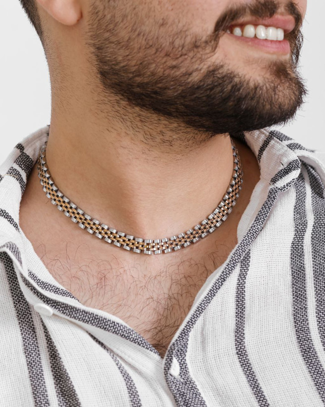 گردنبند استیل زنانه ومردانه رولکس رنگ ثابت ضد حساسیت بسیار زیبا و شیک