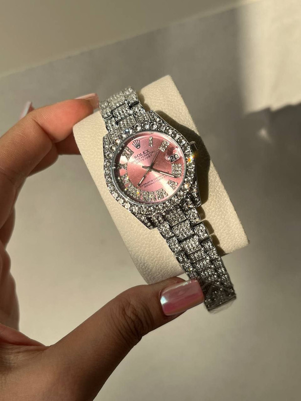 ساعت فول نگین زنانه رولکس رنگ ثابت ضد حساسیت بسیار زیبا و شیک