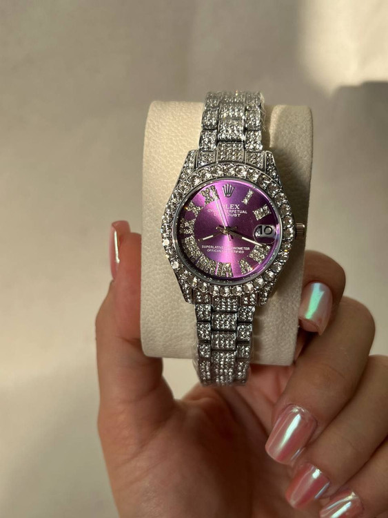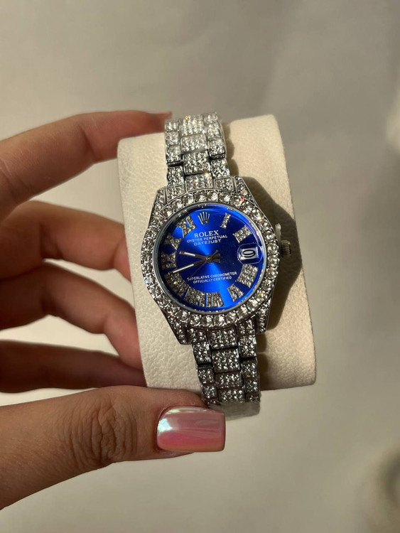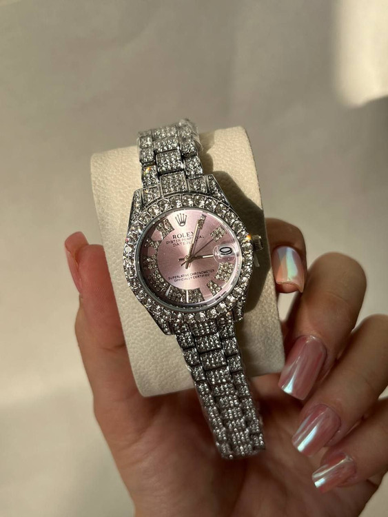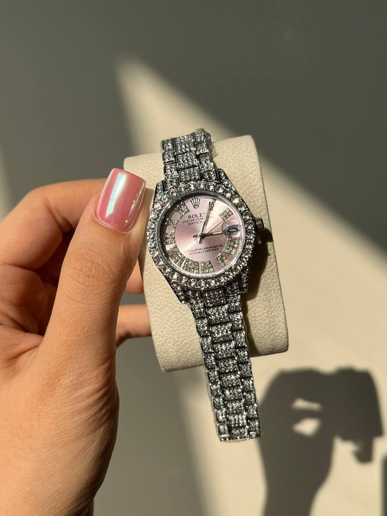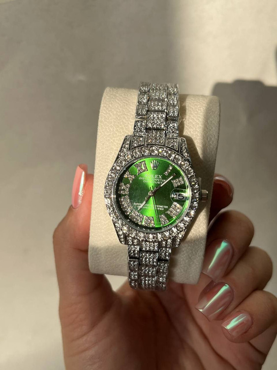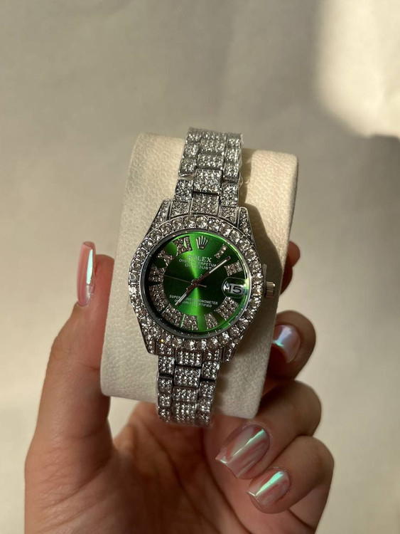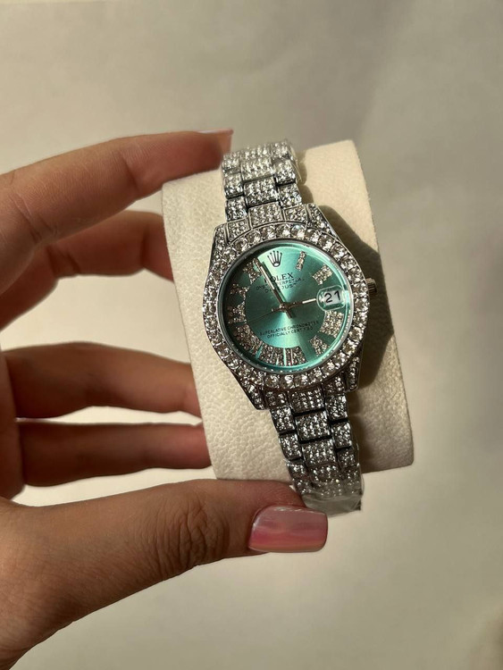 ساعت فول نگین زنانه رولکس رنگ ثابت ضد حساسیت بسیار زیبا و شیک