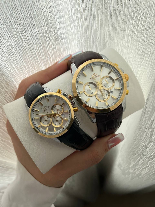 ست ساعت مچی زنانه ومردانه الگانس بند چرمی بسیار زیبا و شیک