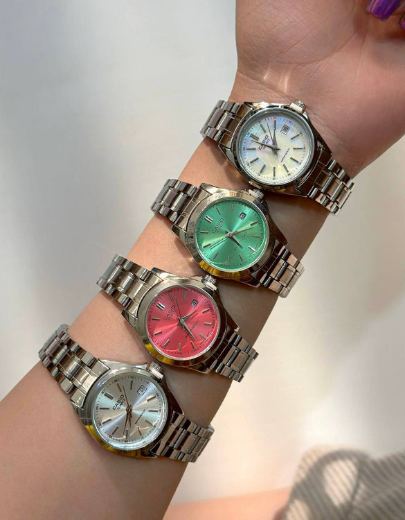ساعت مچی زنانه کاسیو رنگ ثابت ضد حساسیت بسیار زیبا و شیک تقویم دار