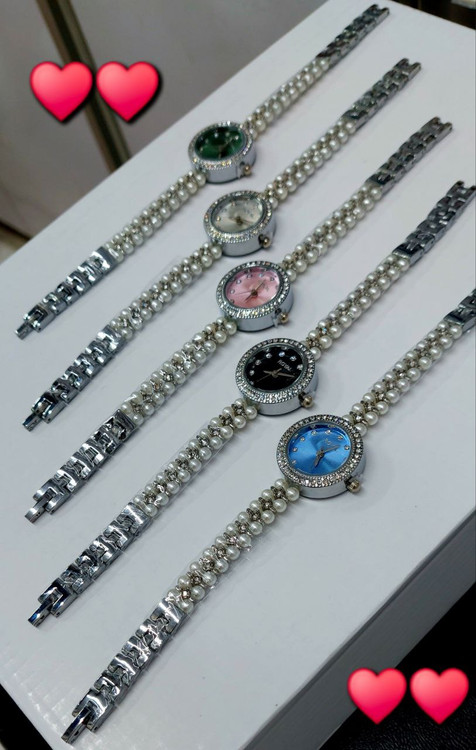 ساعت مچی زنانه مرواریدی رنگ ثابت ضد حساسیت بسیار زیبا و شیک