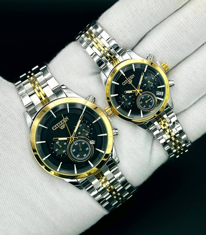 ست ساعت زنانه و مردانه ستیزن رنگ ثابت بسیار زیبا و شیک