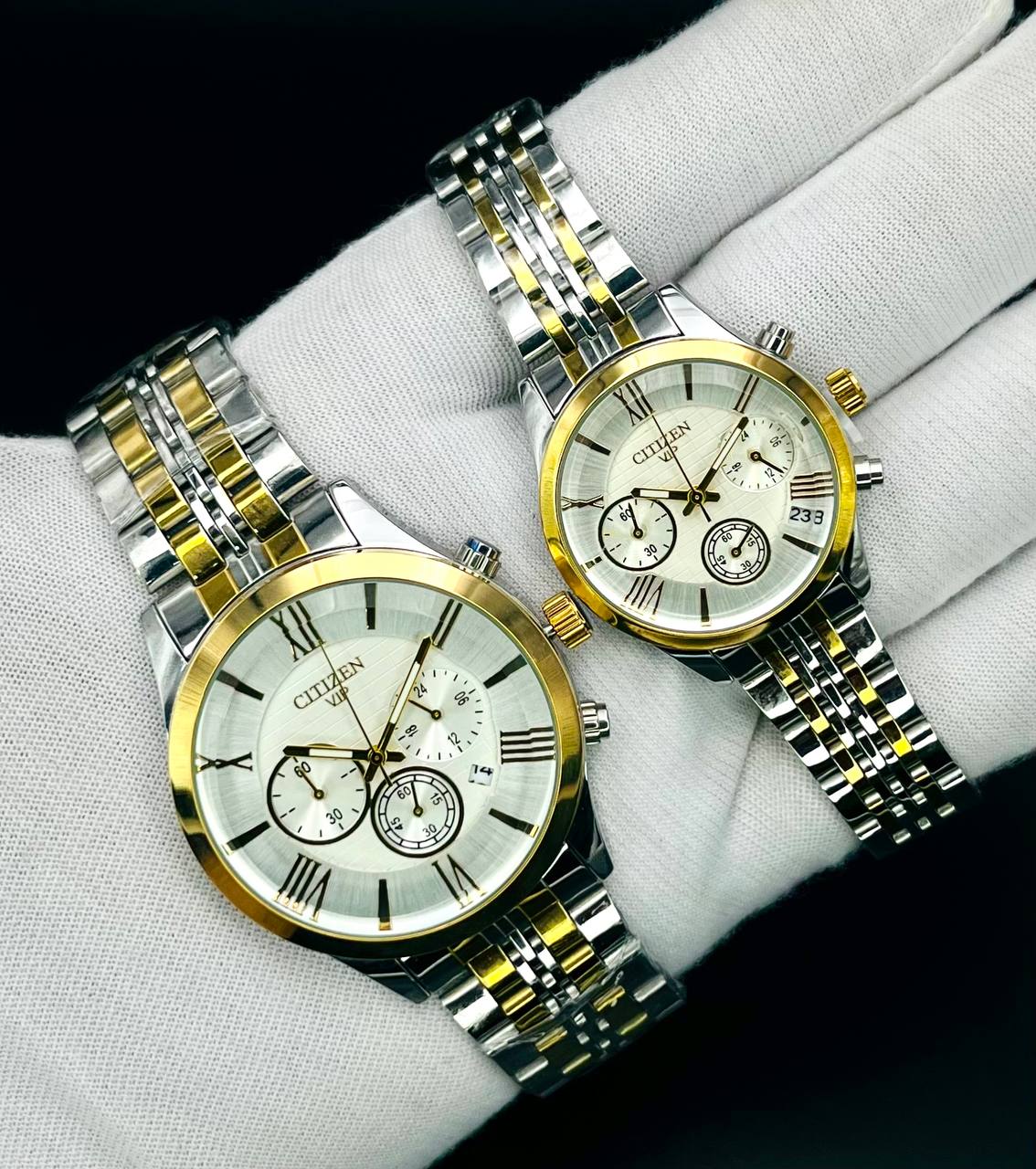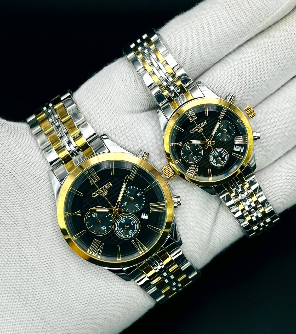 ست ساعت زنانه و مردانه ستیزن رنگ ثابت ضد حساسیت بسیار زیبا و شیک