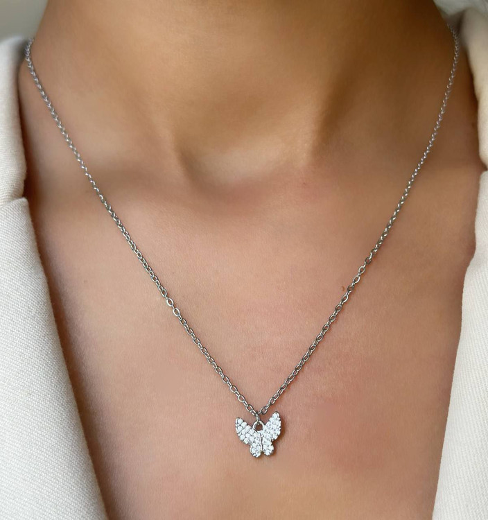 گردنبند استیل طرح پروانه ،گردنبند نگین دار، گردنبند پروانه ،گردنبند استیل، گردنبند
