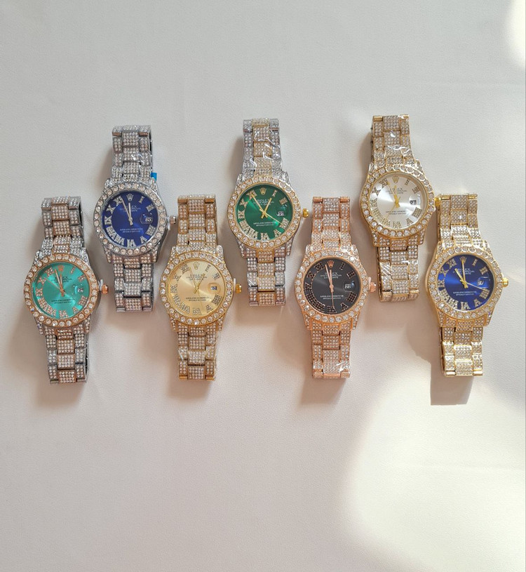ساعت مچی فول نگین رولکس موتور کوارتز صفحه ضد خش با نگین های مخراجکاری وبدون ریزش ضد آب در حد شستشوی دست