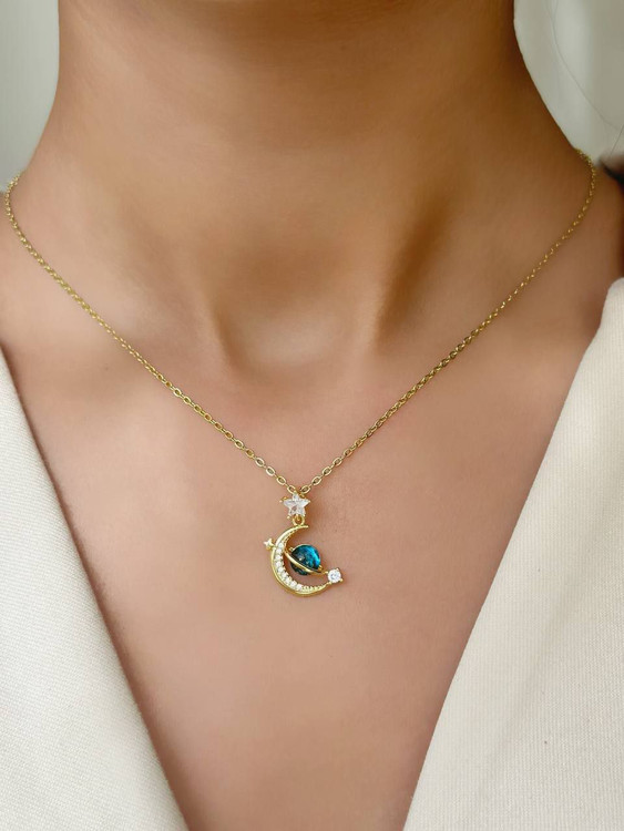 گردنبند ماه وستاره زنانه، گردنبند نگین دار زنانه، گردنبند استیل، گردنبند زنانه