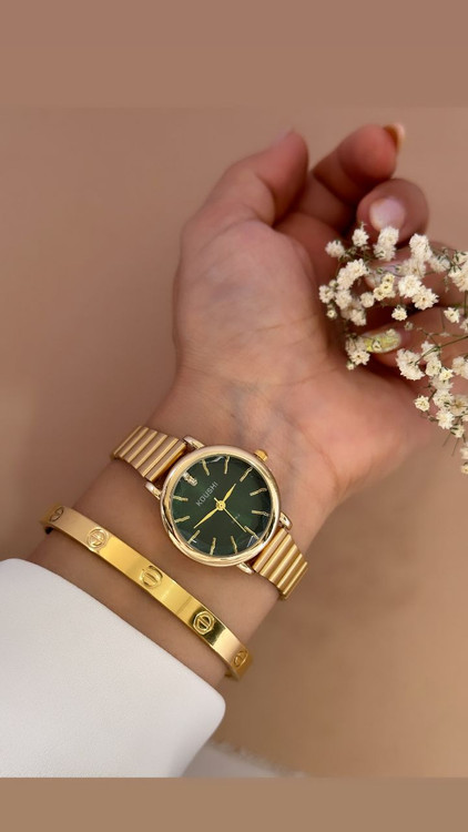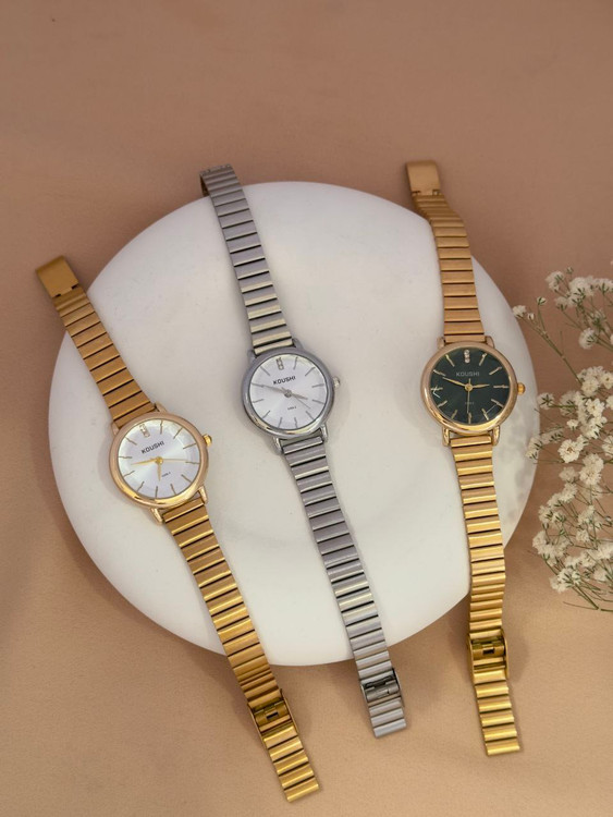 ساعت مچی زنانه رنگ ثابت ضد حساسیت بسیار زیبا و شیک بند ریلی قیمت ها فقط برای ساعت بوده