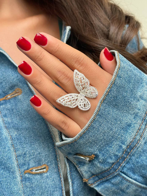 انگشتر زنانه پروانه ای رنگ ثابت ضد حساسیت بسیار زیبا و شیک نگین های مخراجکاری ضد ریزش