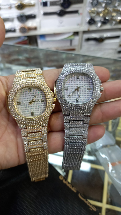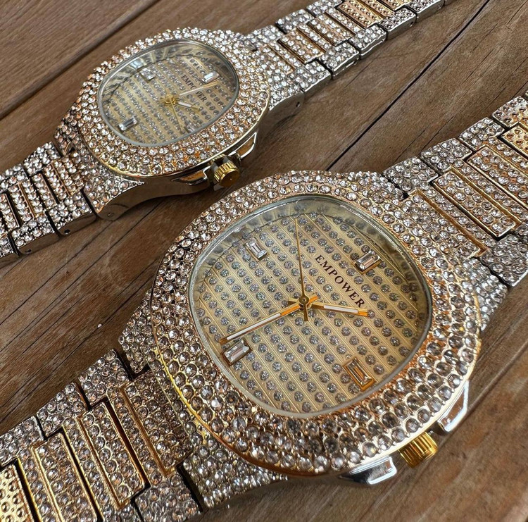 ست ساعت عروس و داماد فول نگین پتک فلیپ، ساعت مچی نگین دار زنانه و مردانه potak