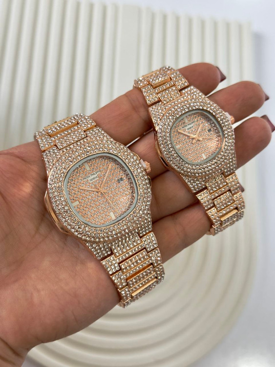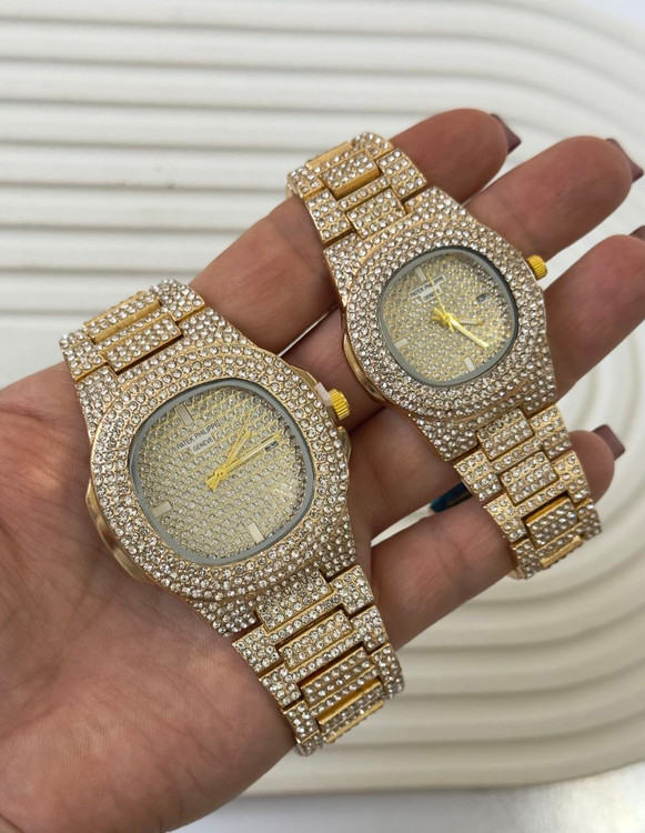 ساعت مچی زنانه ومردانه فول نگین رنگ ثابت ضد حساسیت بسیار زیبا و شیک ضدآب دارای تقویم قفل پروانه ای