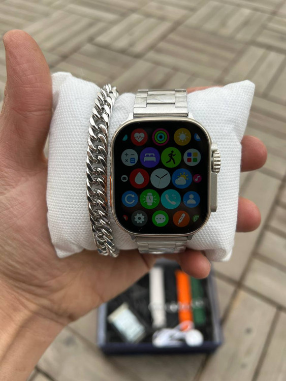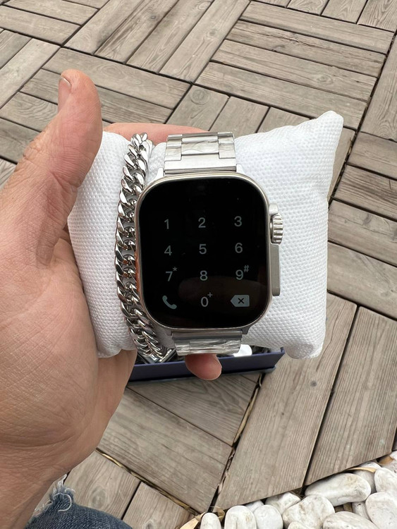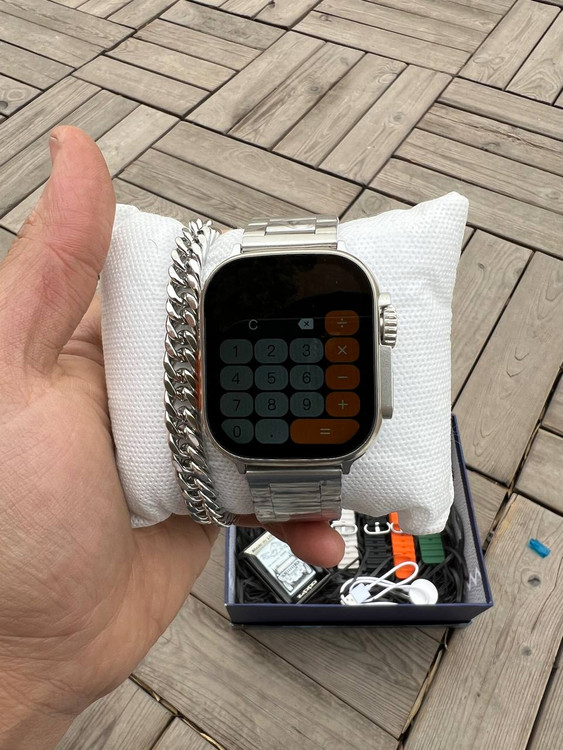 ساعت هوشمند الترا با امکانات وصل شدن به گوشی جهت مکالمه نمایش پیامک وکلی برنامه های کاربردی ورزشی و پزشکی