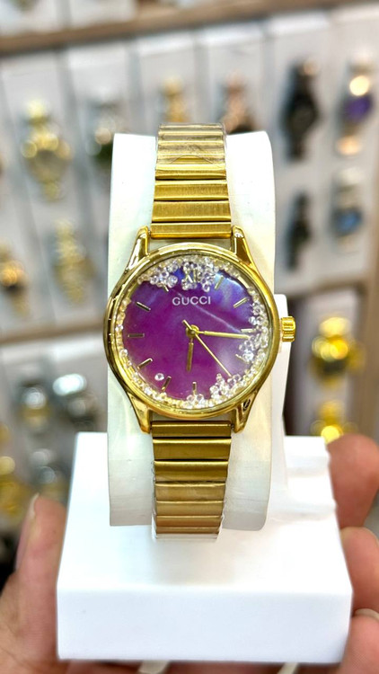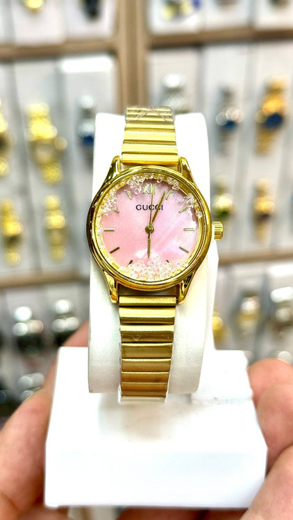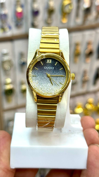 ساعت مچی زنانه، ساعت مچی دخترانه نگین داخل، ساعت مچی نگین دار زنانه طلایی