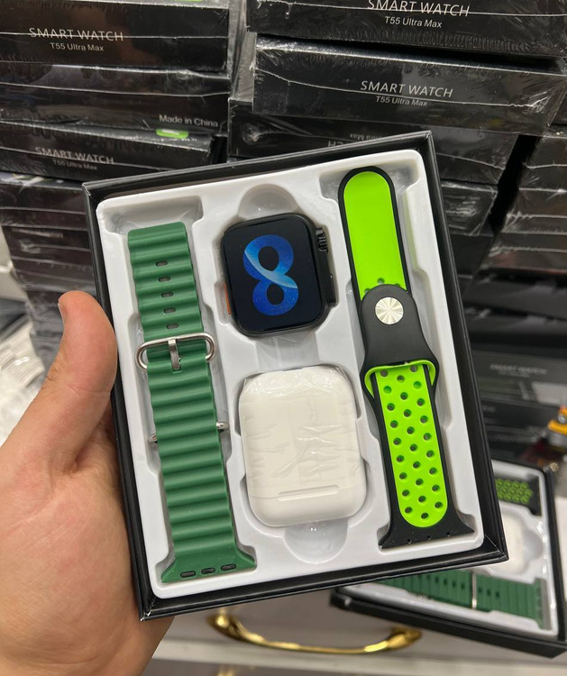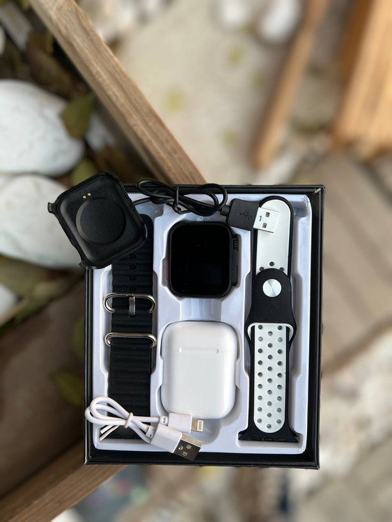 ساعت بهمراه دو عدد بند و ایرپاد وسیم شارژر وایرلس مگنتی