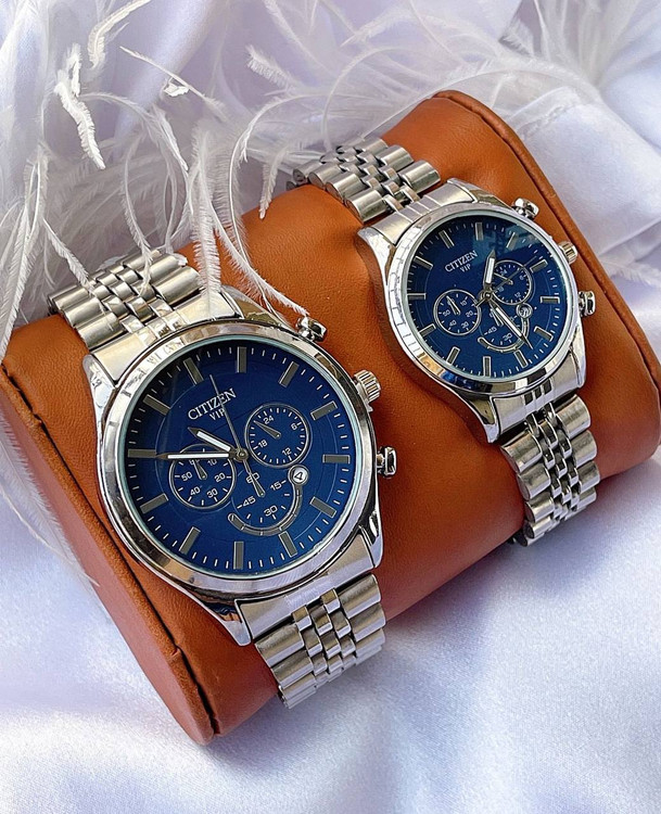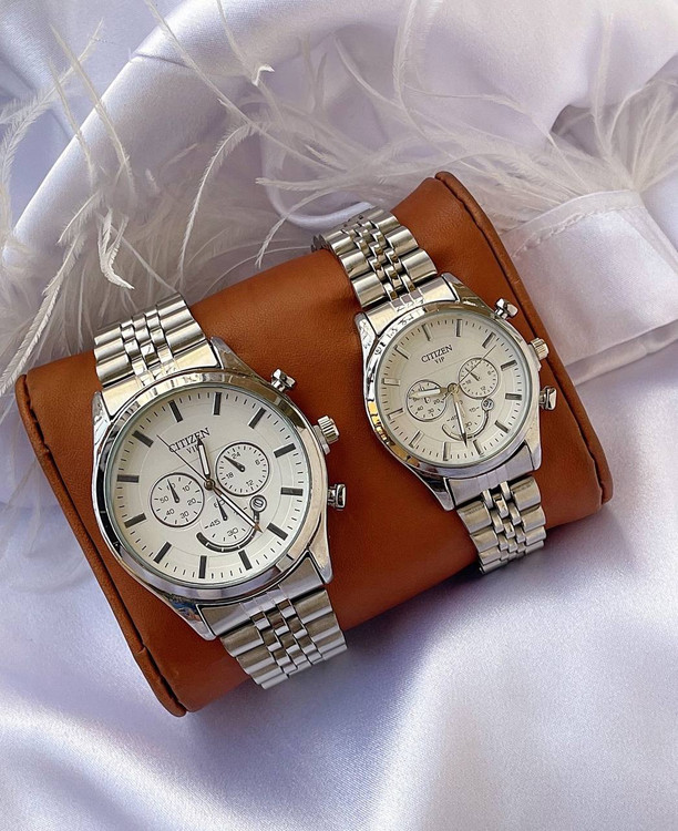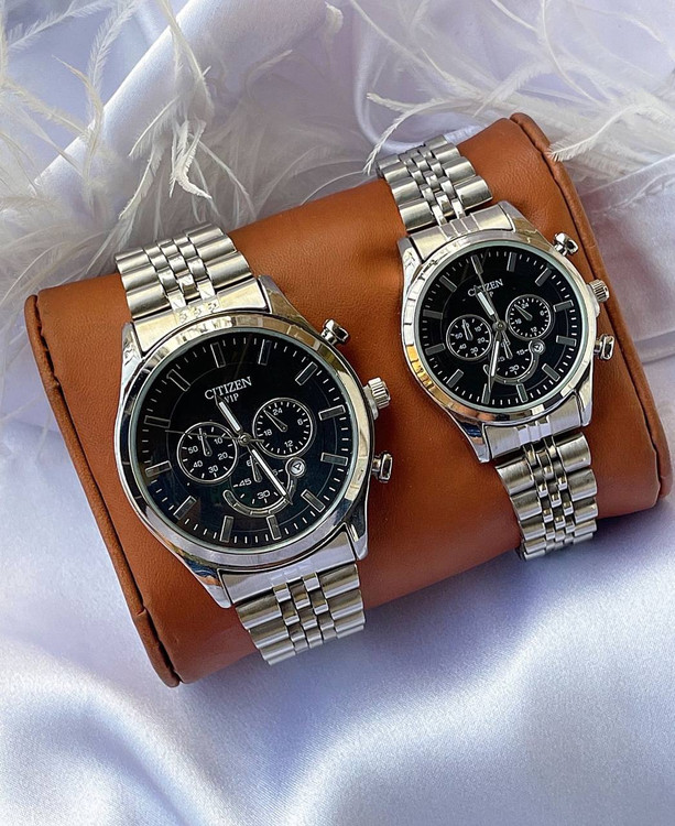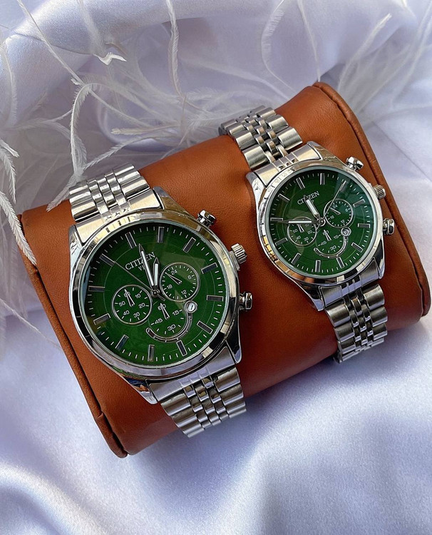 ست ساعت مچی زنانه ومردانه ستیزن رنگ ثابت ضد حساسیت بسیار زیبا و شیک دارای نمایشگر تقویم