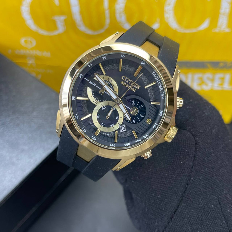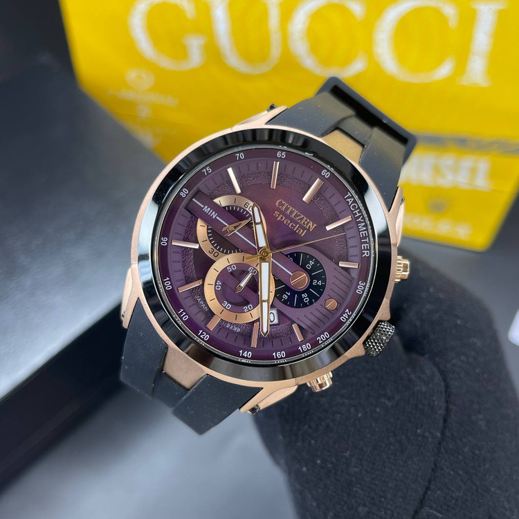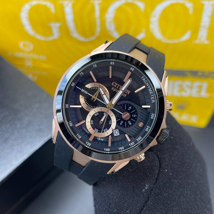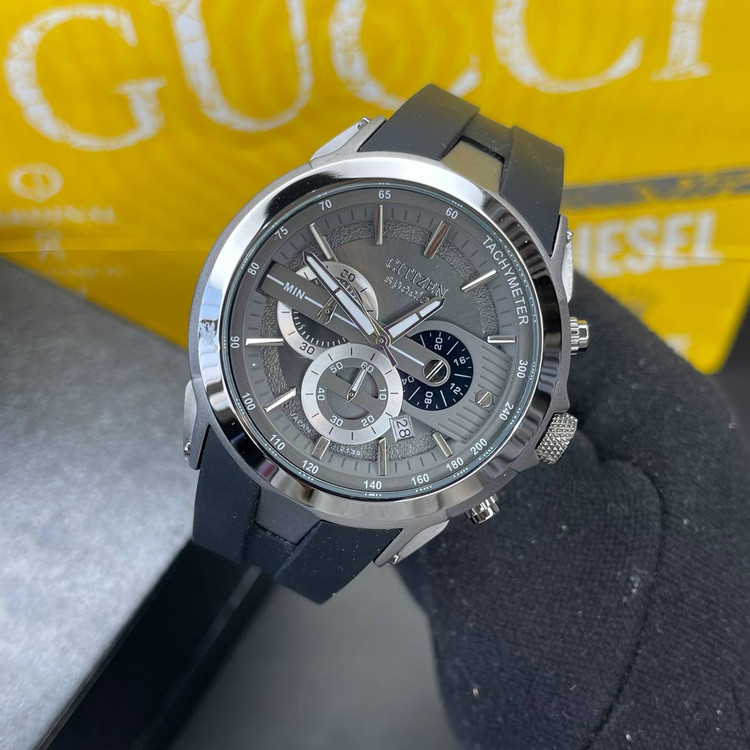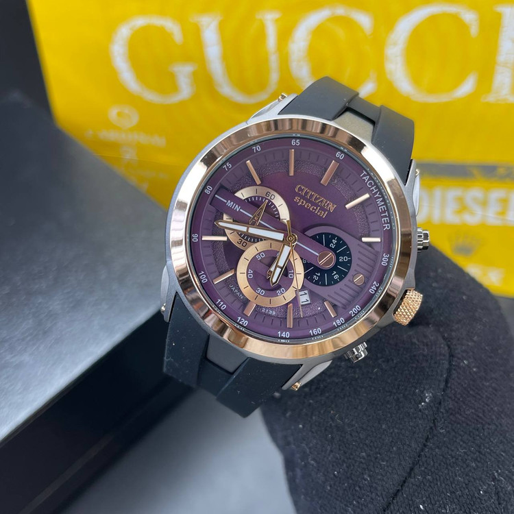 ساعت مچی مردانه ستیزن اسپیشیال کرنوگراف بند رابر موتور ژاپن شیشه معدنی ضد خش رنگ ثابت ضد حساسیت بسیار زیبا و شیک ضدآب دارای تقویم اتومات