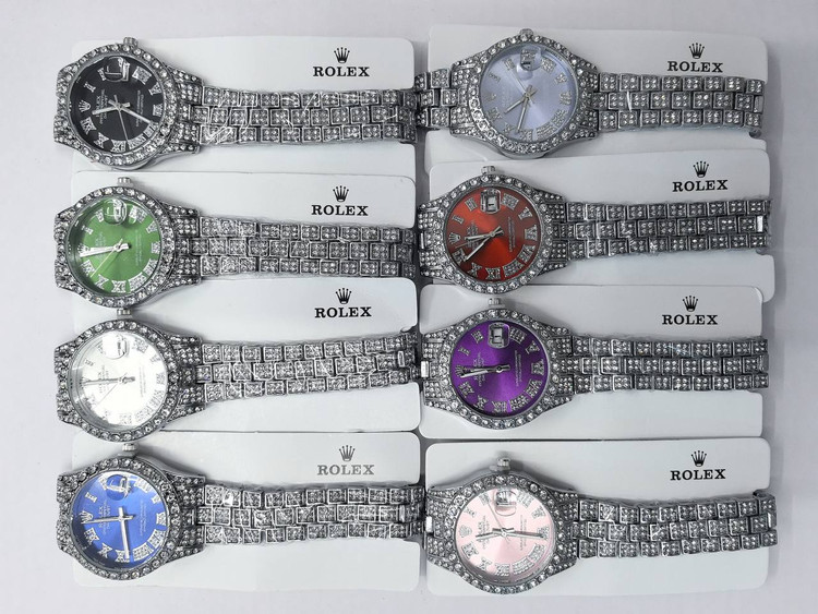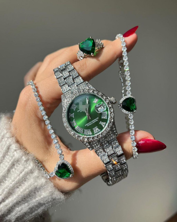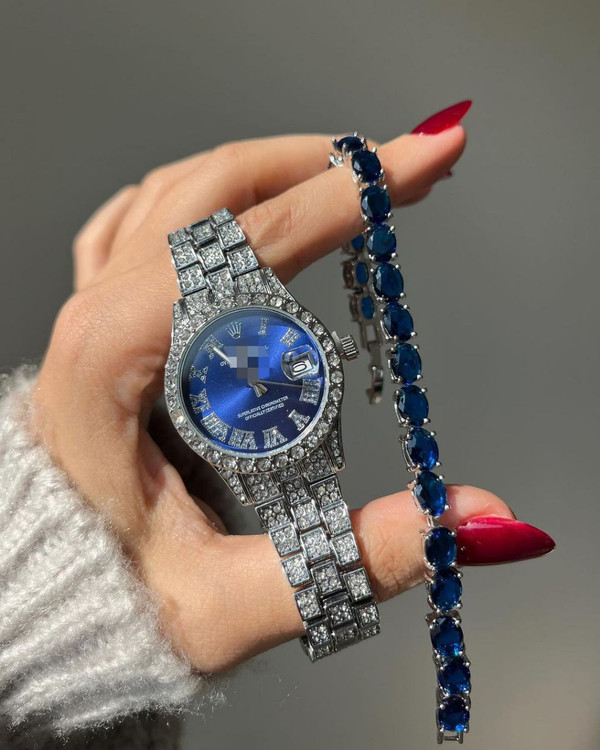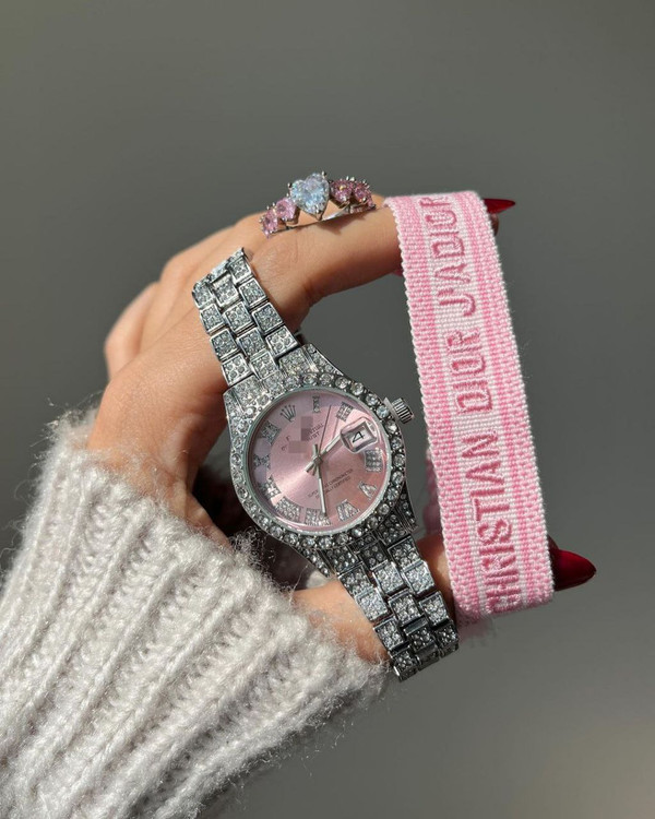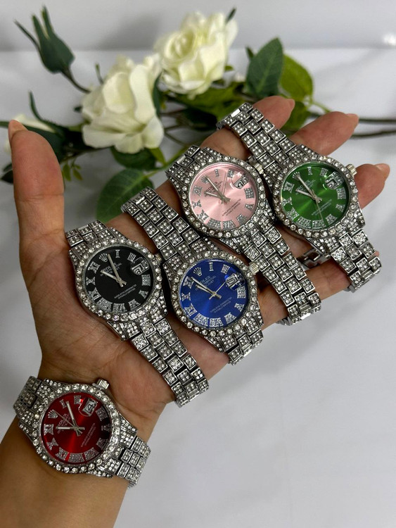 ساعت مچی نگین دار زنانه رولکس رنگ ثابت ضد حساسیت بسیار زیبا و شیک تقویم دار