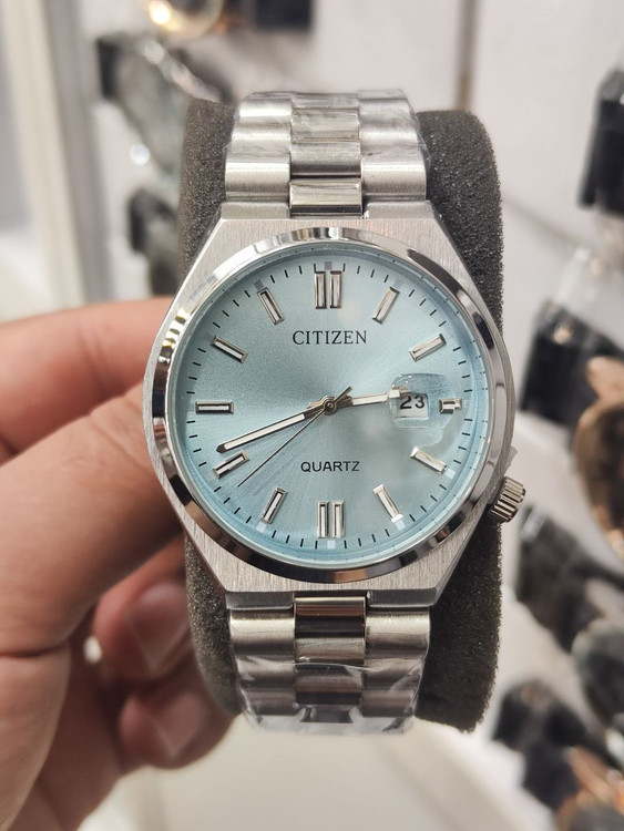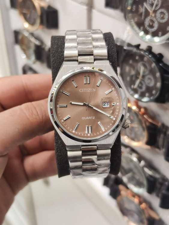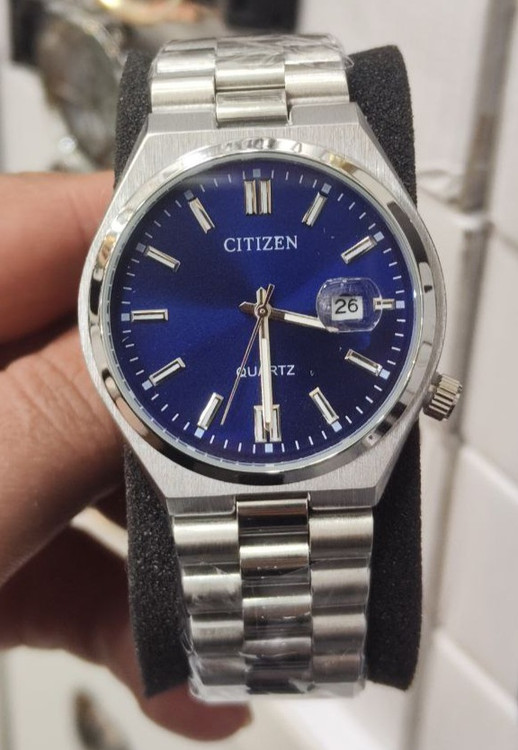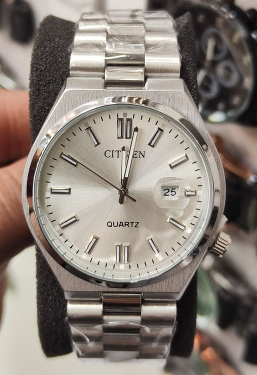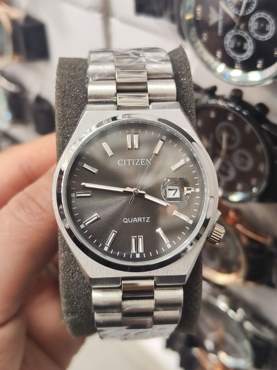 ساعت مچی مردانه ستیزن رنگ ثابت ضد حساسیت بسیار زیبا و شیک تقویم دار بهمراه جعبه