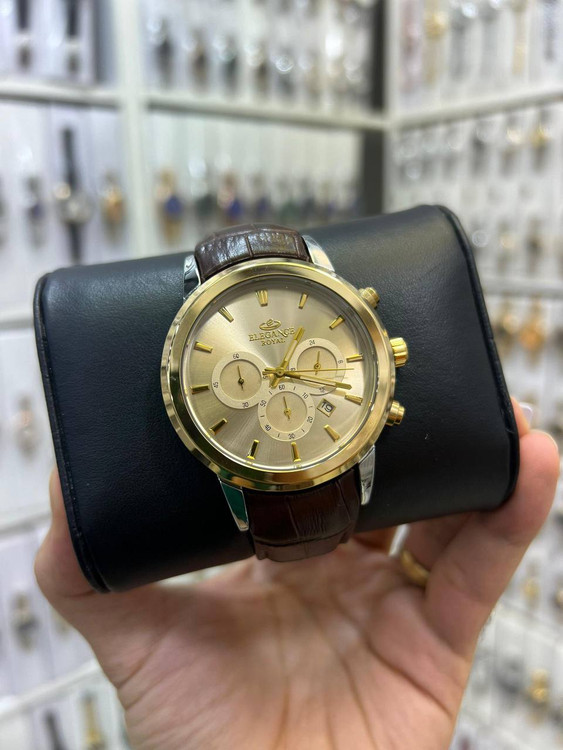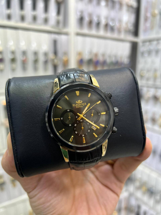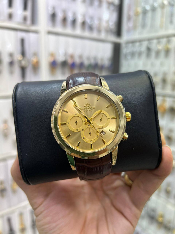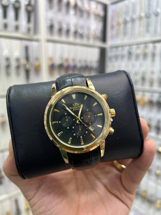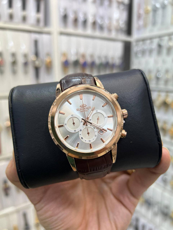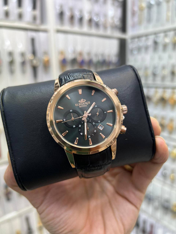 ساعت مچی مردانه برند الگانس رنگ ثابت بسیار زیبا و شیک تقویم دار بهمراه جعبه شیشه معدنی ضد خش