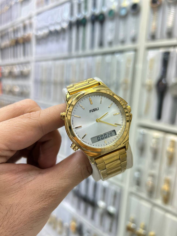 ساعت مچی مردانه دو زمانه رنگ ثابت ضد حساسیت بسیار زیبا و شیک